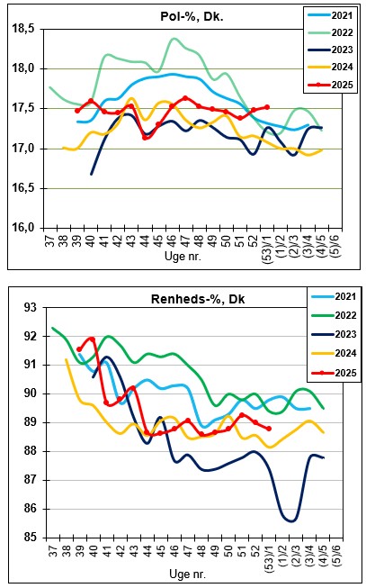 Renhed og sukkerprocent holder sig fortsat på et fint niveau.