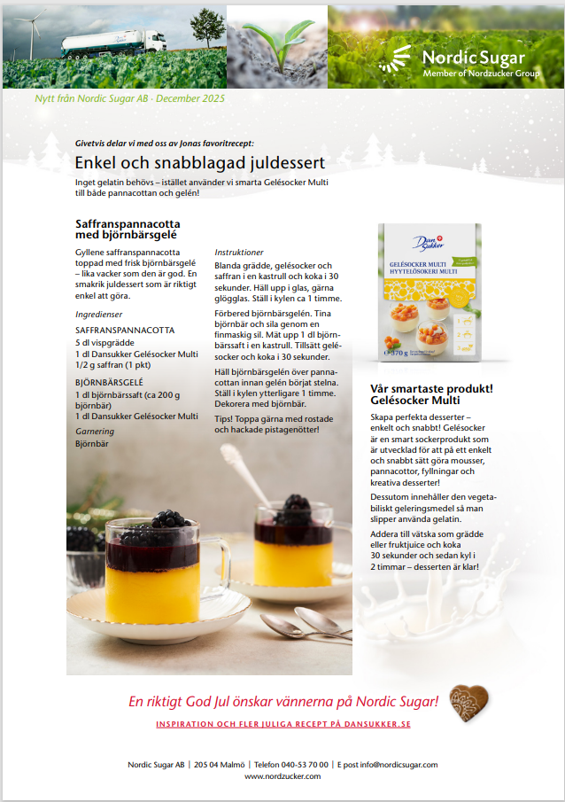 Kampanjens sista betor är levererade till Örtofta /irj/portal/nordzucker/sv?NavigationTarget=navurl://91666964a1372051f97eb270d017de34&paraconfig=OT-DS-Server_agriportal&paraurl=http%3A%2F%2Fgut210146.nordzucker.lan%3A8080/cps/rde/xchg/agriportal/hs.xsl/22653.htm2026-01-1700:00:0022653.htm Marknadsrapport för socker /irj/portal/nordzucker/sv?NavigationTarget=navurl://91666964a1372051f97eb270d017de34&paraconfig=OT-DS-Server_agriportal&paraurl=http%3A%2F%2Fgut210146.nordzucker.lan%3A8080/cps/rde/xchg/agriportal/hs.xsl/22645.htm2026-01-1600:00:0022645.htmMarknadsrapport för socker