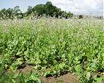 Biologisk bekämpning med vitsenap (bilden till vänster) eller oljerättika (bilden till höger)